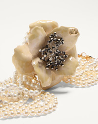 Fleur Lumineuse Necklace in Metal, Enamel, Glass Beads and Fabric - Gold-tone finish - Enameled metal flower, with irregular enameled petals and hand-painted and hand-set fabric pistils - Multiple strands of round and baroque glass beads - Flower size: 9 x 9 cm / 3.5 x 3.5 in. - Bead diameter: 6 mm / 0.2 in. - Adjustable length from 36 to 38 cm / 14.2 to 14.9 in. - Swivel snap hook closure - Made in Italy Product code: 7W2J0AR6KFH_9SL