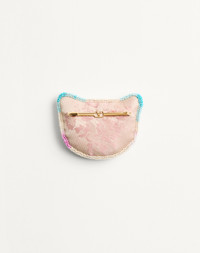 LE CHAT DE LA MAISON BROOCH IN JACQUARD FABRIC WITH RESIN BEAD EMBROIDERY
