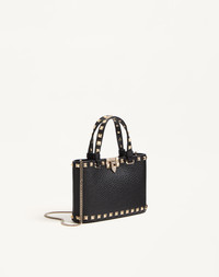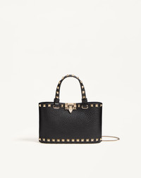 Valentino Garavani Rockstud mini shopping bag in grainy calfskin. The bag may be handheld or worn over the shoulder/crossbody thanks to the handles and the detachable chain. - Platinum-finish studs and hardware - Hook closure - Removable chain. Drop length: 55 cm / 21.7 in. - Canvas lining. Interior: two card slots - Dimensions: W18.5xH12.5xD5.5 cm / W7.3xH4.9xD2.2 in. - Made in Italy Product code: 7W2P0AT0VSH_0NO