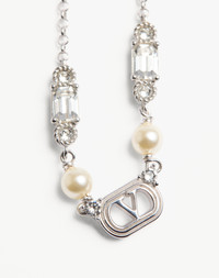 OVALETTE NECKLACE IN METAL, PEARLS, AND SWAROVSKI® CRYSTALS