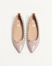 Valentino Garavani Rockstud ballerina in patent leather. Platinum-finish studs. Heel 5 mm/0.25''. Made in Italy. Product code: 7W2S0403VNW_P45