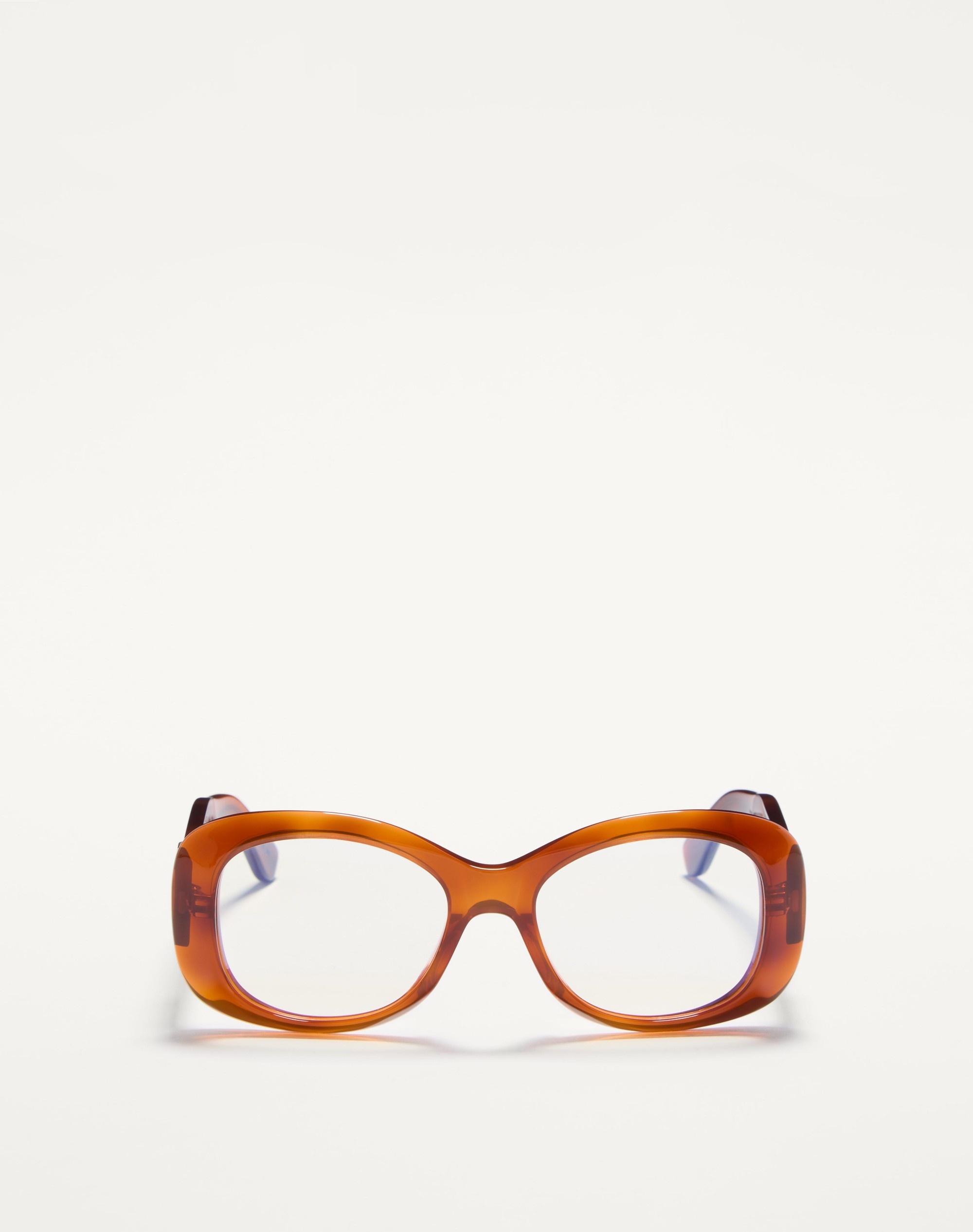 A retro-chic rectangular frame, as bold as it is feminine. This model is elegantly constructed from a sturdy, thick acetate, milled to achieve greater dimensionality, reducing its weight without compromising on volume, ensuring timeless beauty. The rectangular 1970's eyewear, as ingenious as it is beautiful, also features an oversized variant of the iconic VLogo, mechanically applied to the temples for precise visibility and an extraordinary visual impact. Elegant, sensual, and designed with comfort and everyday use in mind. FEATURES - Lens base: 4 Lens category: n/a Lens material: nylon - UV transmittance: n/a - Suitable for prescription - Packaging: Recycled opaque black paper/FSC box with inserts in black paper bags to include product accessories, recycled microfiber lens cloth, and case. - Leather case: black case and shiny recycled leather strap with black metal VLogo - Women's eyeglasses - Made in Italy DIMENSIONS - Temple length: 14.5 cm / 5.7 in. - Total frame width: 14.6 cm / 5.74 in. - Lens width: 5.3 cm / 2.1 in. - Lens height: 4.3 cm / 1.7 in. - Bridge: 1.8 cm / 0.7 in. Product code: Z530VLX181C_7FR