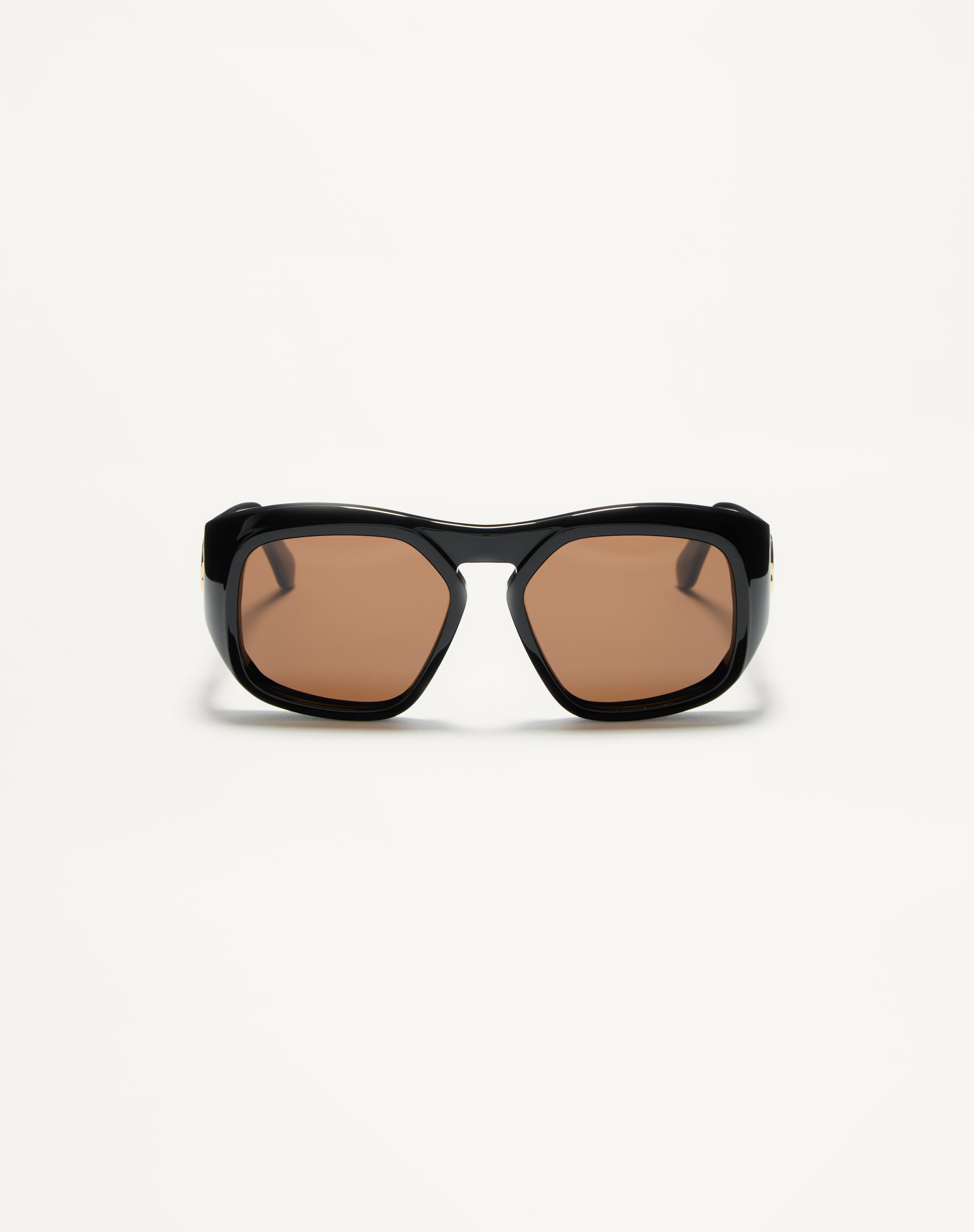 A retro-chic rectangular shape with a strong attitude and squared-front geometric piece. Sculpted of thick acetate with elegant milling throughout the front, as well as the interior, for added 3D richness, dimensionality and balance, this showpiece also features a high bridge for strength of character and the iconic VLogo mechanically screwed onto the temples for maximum visibility and impact. FEATURES - Lens Base: 4 Lens Category: 3 Lens Material: CR-39 - UV Transmittance: 0% Visibility Transmittance: 12.09% - Prescription friendly - Paper box: black matte paper box in recycled / FSC paper with black paper envelope inserts to include product accessories, recycled microfibre lens cloth and pouch. - Leather case: black case and strap in shiny recycled leather with black metal VLogo - Unisex Sunglass - Handcrafted in Italy MEASUREMENTS - Temples lenght: 14.5 cm / 5.7 in - Frame total width: 15 cm / 5.9 in - Lens Width: 5.5 cm / 2.1 in - Lens Height: 4.6 cm / 1.8 in - Bridge: 1.7 cm / 0.6 in Product code: Z530VLS179A_7UY