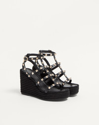 ROCKSTUD ANKLE STRAP WEDGE SANDAL IN CALFSKIN LEATHER 95 MM