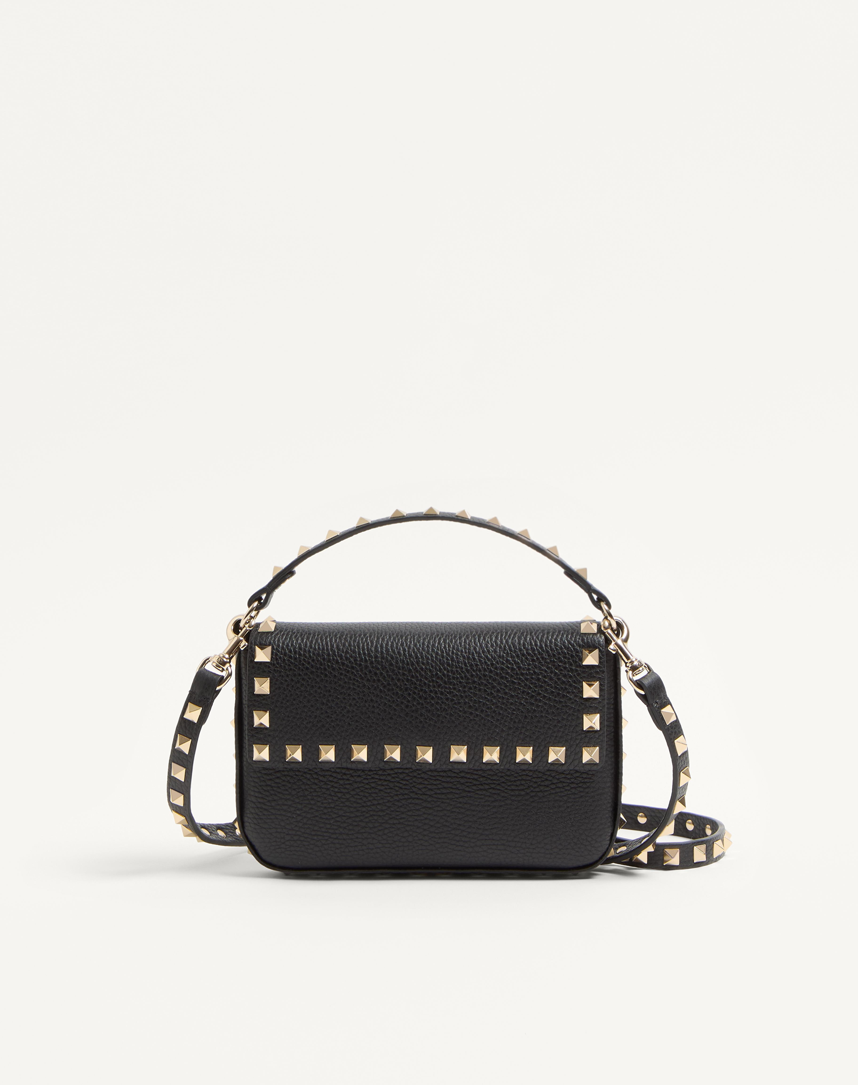 Valentino Garavani Rockstud pouch in grainy calfskin leather. - Platinum-finish metal studs and hardware - Magnetic button fastening - Removable strap - Open slip pocket and three card slots - Dimensions: W19xH12xD3 cm / W7.5xH4.7xD1.6 in. - Drop length: 51 cm / 20.1 in. - Made in Italy This product contains magnets. Please consider if this product will be worn within 15 cm from any implanted device. Any concerns please contact your healthcare professional. Product code: 7W2P0W07VSH_0NO