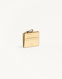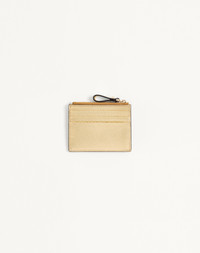 ROCKSTUD LAMINATED GRAINY CALFSKIN CARD HOLDER WITH ZIPPER