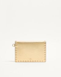 ROCKSTUD LAMINATED GRAINY CALFSKIN CLUTCH BAG