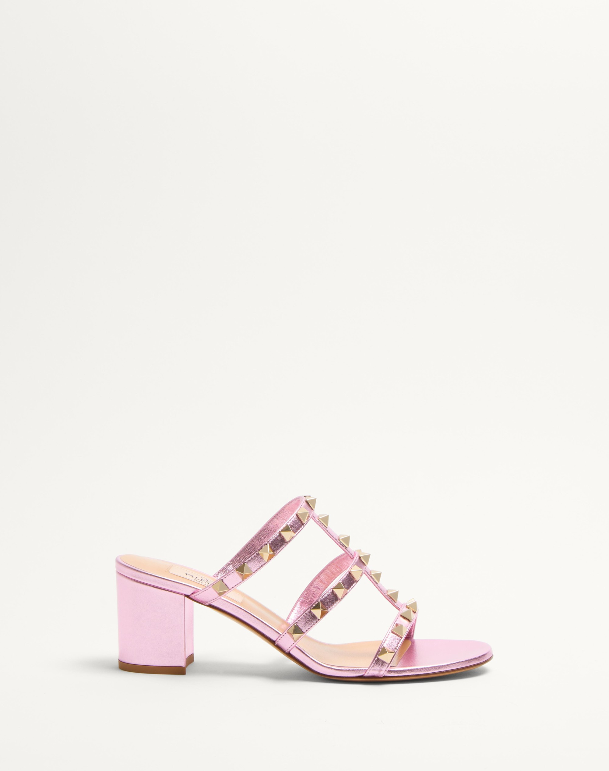 ROCKSTUD SLIDE SANDAL IN LAMINATED NAPPA 60MM