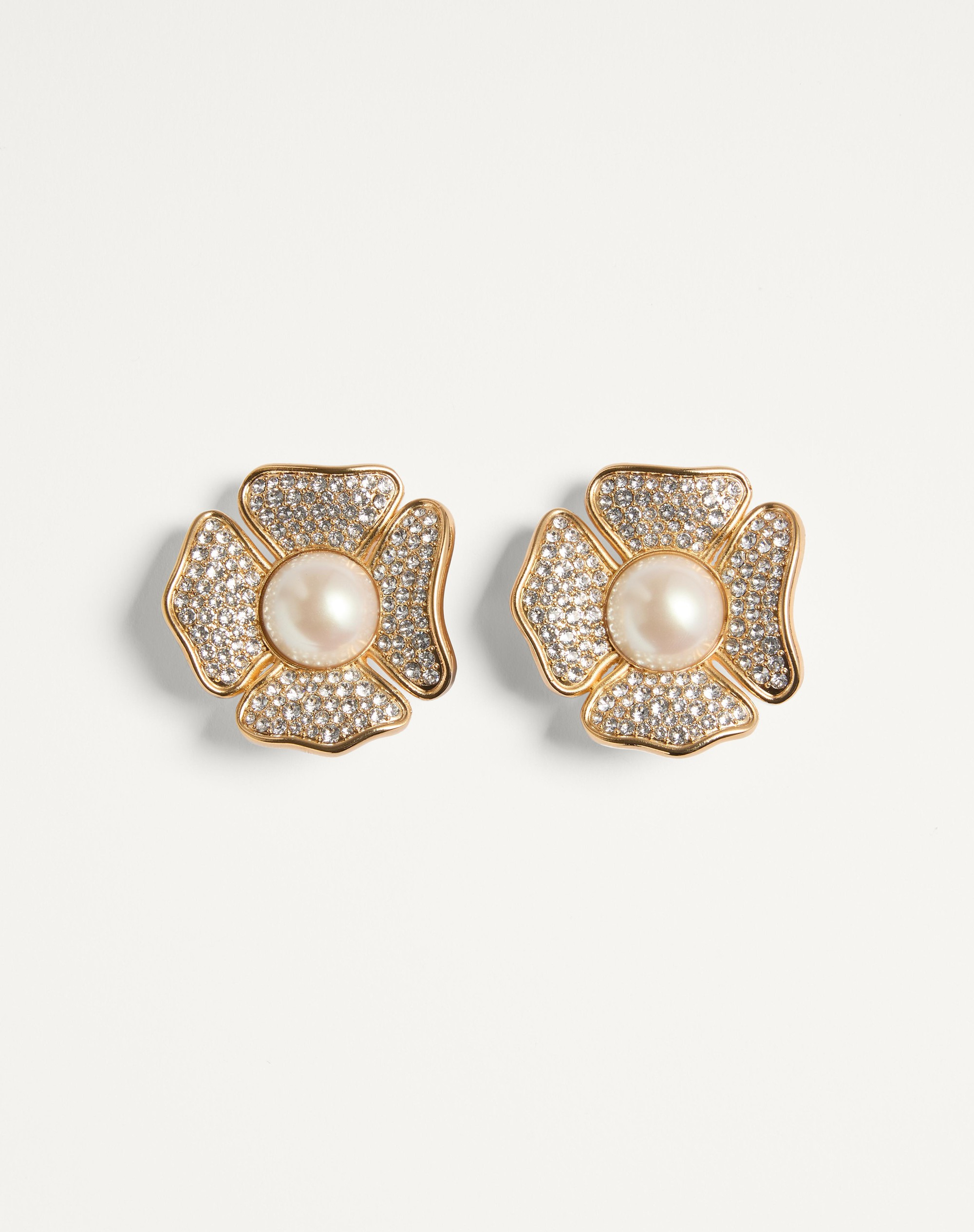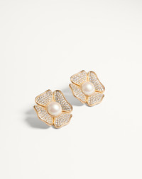 Sans Fin Earrings in Metal, Pearls and Swarovski® Crystals - Gold-tone finish - Resin pearls - Dimensions: 5 x 5 cm / 2 x 2 in. - Clip fastening - Made in Italy Product code: 7W2J0AN6HJY_A3M