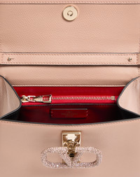 Valentino Garavani VSLING small handbag in grainy calfskin and VLogo Signature closure covered in Swarovski® crystals. The bag can be worn on the shoulder/crossbody thanks to its extendable shoulder strap, and handheld thanks to its handle. - Platinum-finish logo and hardware - Magnetic logo closure - Leather shoulder strap with adjustable chain element - Protective feet - Nappa leather lining. Interior: one zipper pocket Shoulder strap drop length: min. 45 cm to max. 59 cm / min. 17.7 in. to max. 23.2 in. - Dimensions: W22xH17xD9 cm / W8.6xH6.6xD3.5 in. - Made in Italy This product contains magnets. Please consider if this product will be worn within 15 cm from any implanted device. Any concerns please contact your healthcare professional. Product code: 6W2B0F53YVV_KFJ