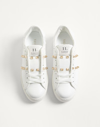 Valentino Garavani Rockstud Untitled sneaker in white calfskin - Platinum-finish studs on the band - Special label with the number 11 - Rubber sole with stud details - Made in Italy Product code: 7W2S0A01BHS_0BO