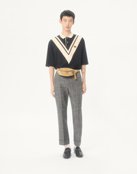 VALENTINO COTTON POLO WITH INLAID V AND EMBROIDERED PANTHER PATCH