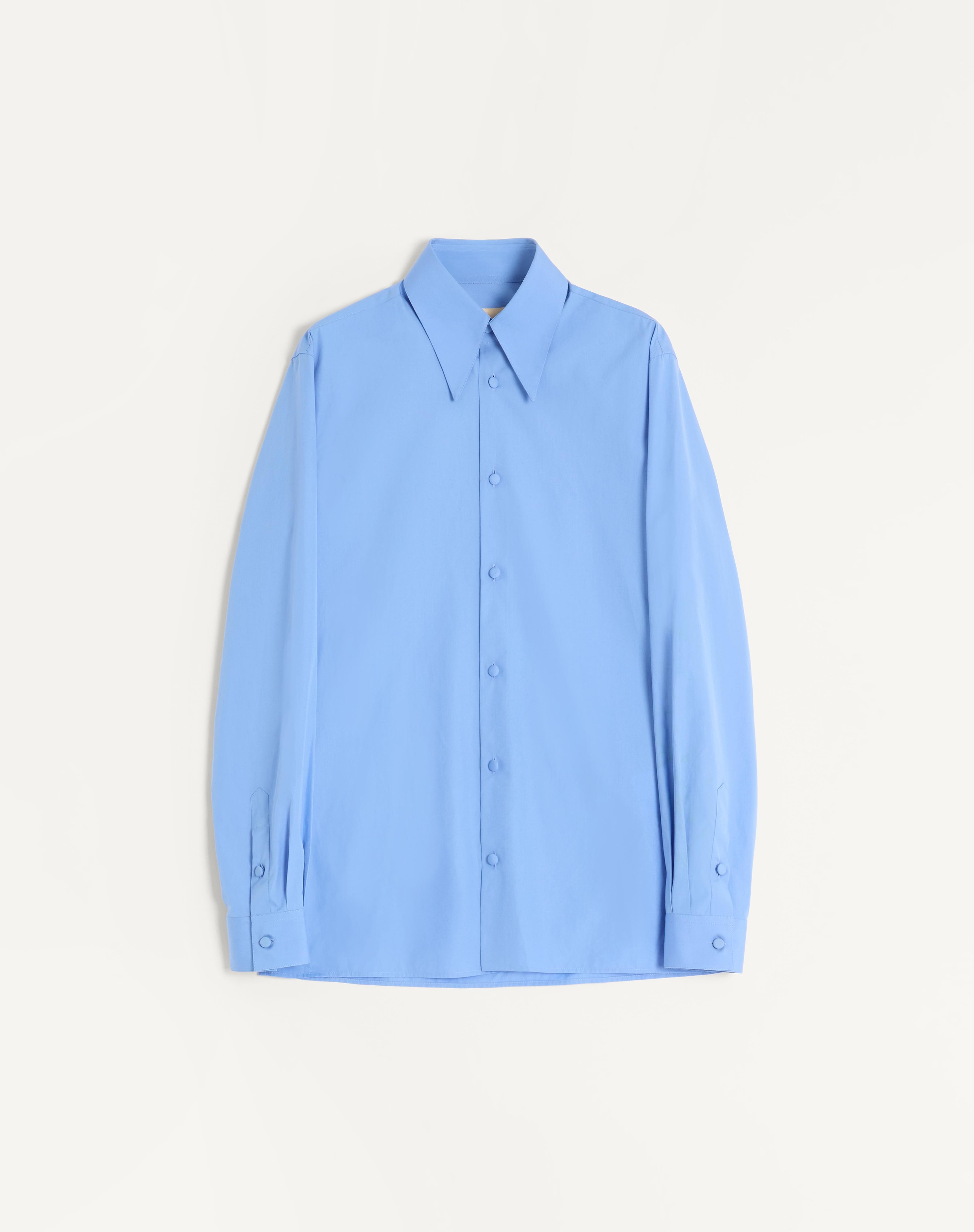 Valentino cotton poplin shirt - Slim fit - Pointed collar - Composition: 100% Cotton - Length: 77 cm / 30.3 in. from the back of the neck in an Italian size 39 - The model is 187 cm / 6'1" tall and wears an Italian size 39 - Made in Italy The look of the model is completed by a Valentino Garavani Viva Superstar Bag and Valentino Garavani Babouchoues Shoes. Product code: 7V0ABS20B57_DPQ
