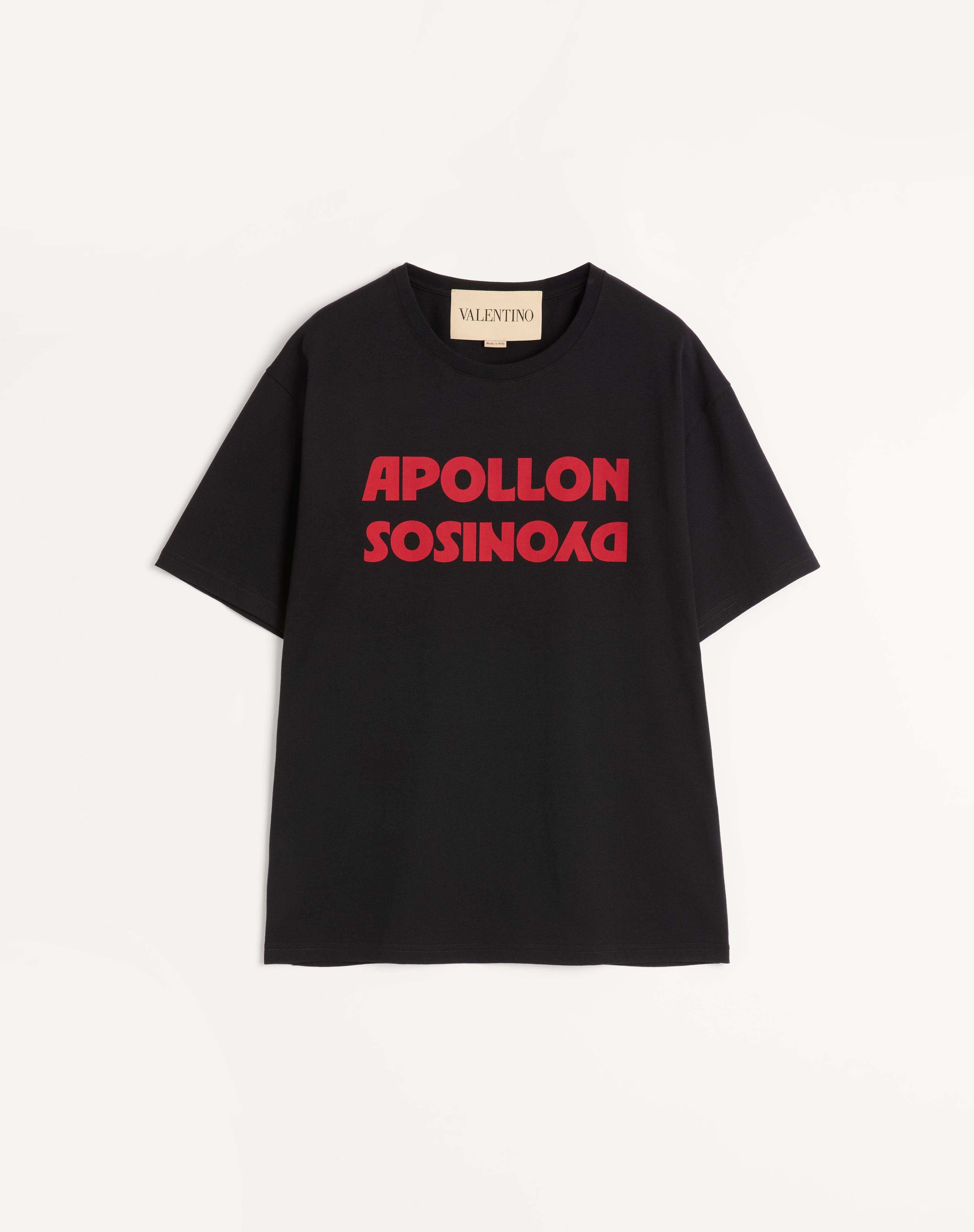 Valentino cotton T-shirt with Apollon/Dyonisos print - Regular fit - Apollon/Dyonisos print on chest - Composition: 100% Cotton - Length: 72 cm / 28.3 in. from the back of the neck in a size L - The model is 187 cm / 6'1" tall and wears a size L - Made in Italy The look of the model is completed by a Valentino Garavani Viva Superstar Bag and Valentino Garavani Babouchoues Shoes. Product code: 7V0MG16PB6E_0NR
