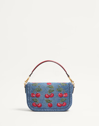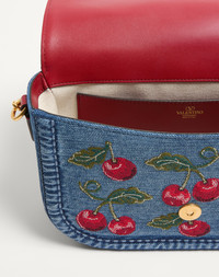 VALENTINO GARAVANI ALLTIME DENIM SHOULDER BAG WITH CHERRYFIC EMBROIDERY