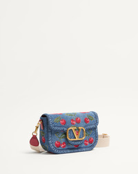 Valentino Garavani Alltime denim shoulder bag with Cherryfic embroidery and metallic VLogo Signature feature. The bag can be handheld or worn over the shoulder/crossbody thanks to the removable handle and removable ribbon shoulder strap. - Antique brass-finish hardware - Magnetic closure - Removable leather handle - Adjustable and removable ribbon shoulder strap - Canvas lining. Interior: one slip pocket - Shoulder strap drop length: 53 cm / 20.9 in. - Dimensions: W23.5xH16xD8 cm / W9.3xH6.3xD3.1 in. - Made in Italy This product contains magnets. Please consider if this product will be worn within 15 cm from any implanted device. Any concerns please contact your healthcare professional. Product code: 7W2B0N62FUX_BFE