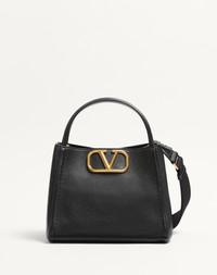 Valentino Garavani Alltime medium handbag in grainy calfskin with metallic VLogo Signature element. The bag can be worn on the shoulder/crossbody thanks to the shoulder straps or carried by hand thanks to the leather handles. - Antique brass-finish hardware - Magnetic closure - Adjustable and detachable ribbon shoulder strap - Adjustable and detachable leather shoulder strap - Protective feet - Interior: one zippered pocket - Leather shoulder strap drop length: 50 cm / 19.7 in. - Dimensions: W26xH21xD17 cm / W10.2xH8.3xD6.7 in. - Made in Italy Product code: 5W2B0Q18IMZ_0NO