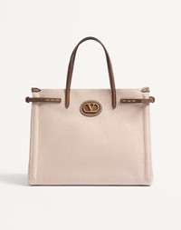 Valentino Garavani Antibes medium canvas shopping bag with side buckle detail and leather patches with VLogo Signature metal feature. The bag can be comfortably worn on the shoulder/crossbody or by hand thanks to the handles and shoulder strap. - Gold-finish hardware - Magnetic closure - Protective feet - Canvas lining. Interior: flat zipper pocket - Double leather handles - Adjustable and removable leather shoulder strap - Adjustable buckles on the sides to change bag capacity - Handle drop length: 16 cm / 6.3 in. - Shoulder strap drop length: 55 cm / 21.7 at the central hole - Dimensions: W35xH29xD18 cm / W13xH11.4xD7 in. - Made in Italy Product code: 6Y2B0D16LYM_RGS