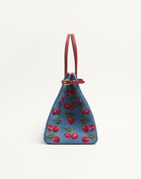 VALENTINO GARAVANI ANTIBES MEDIUM SHOPPING BAG IN DENIM WITH CHERRYFIC EMBROIDERY