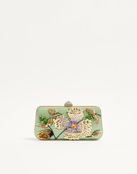 VALENTINO GARAVANI CARRY SECRETS SATIN MINAUDIERE WITH FLORAL EMBROIDERY