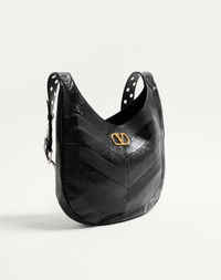 Valentino Garavani Hoboho hobo bag with patchwork design in shiny and matte nappa leather with a chevron pattern. VLogo Signature metal feature in antique brass finish. The bag can be worn on the shoulder or crossbody thanks to the adjustable shoulder strap - Adjustable leather shoulder strap decorated with palladium-finish studs - Shoulder strap drop length: 50 cm / 19.7 in. at the center hole - Nappa leather lining - Dimensions: W35xH27xD4 cm / W13.8xH10.6xD1.6 in - Made in Italy Product code: 7W0B0S29GHA_0NO