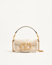 VALENTINO GARAVANI LOCÒ SMALL EMBROIDERED SHOULDER BAG WITH JEWEL LOGO