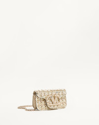 Valentino Garavani Loco small embroidered shoulder bag with VLogo Signature jewel feature. Equipped with both a detachable sliding chain and a detachable handle, this accessory can be worn as a crossbody/shoulder bag or carried as a handbag. - Main composition: laminated nappa, cotton poplin, resin mirrors, rhinestones - Antique brass-finish hardware - Magnetic closure decorated with synthetic pearls and Swarovski® crystals - Removable leather handle - Removable sliding chain shoulder strap - Suede lining. Interior: one slip pocket - Shoulder strap drop length: min. 33 cm to max. 55 cm / min. 13.0 in. to max. 21.7 in. - Dimensions: W20xH11xD5 cm / W7.9xH4.3xD2.0 in. - Made in Italy This product contains magnets. Please consider if this product will be worn within 15 cm from any implanted device. Any concerns please contact your healthcare professional. Product code: 7W2B0K53EPH_ANF