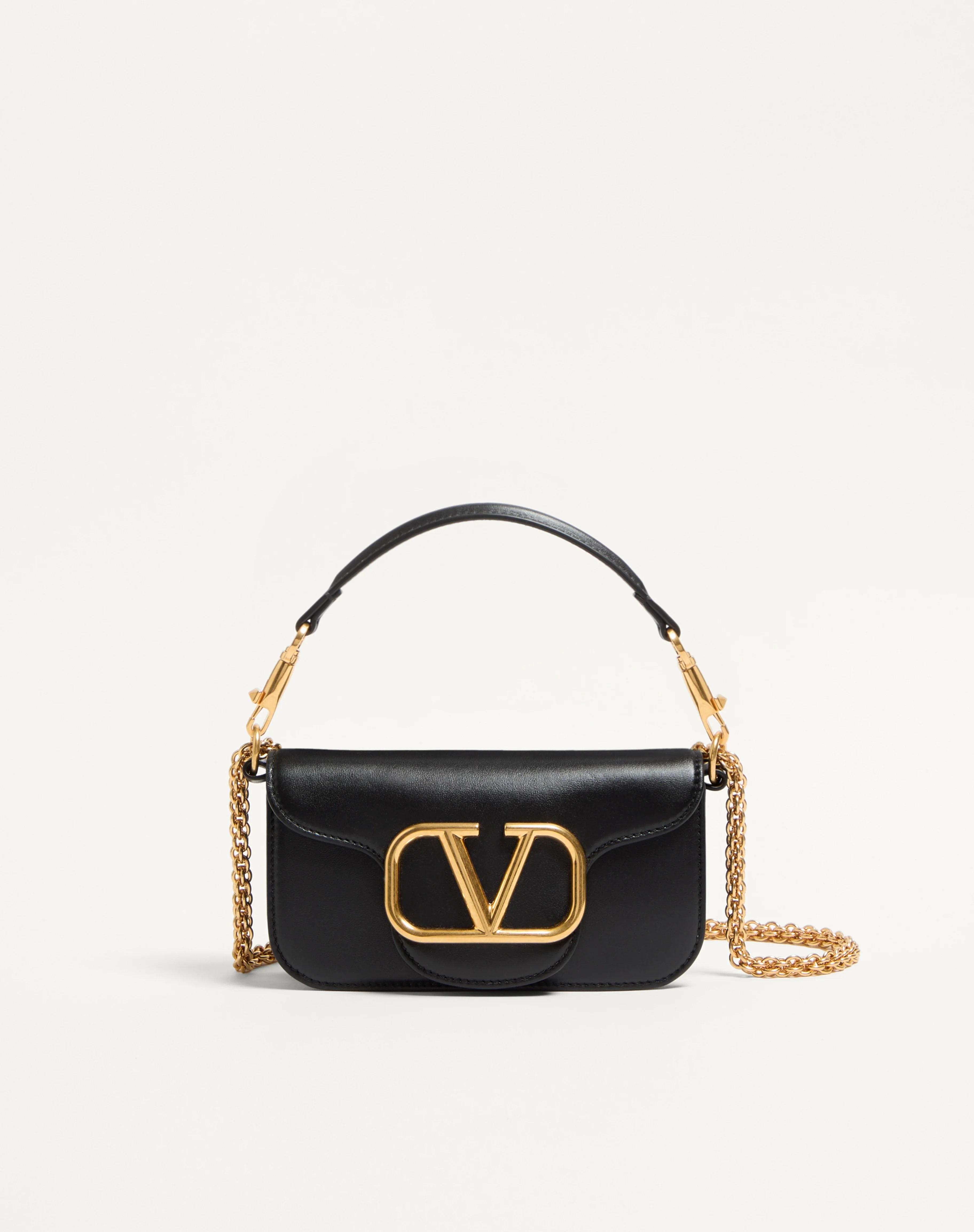 Valentino Garavani Loco women's small shoulder bag in calfskin leather with VLogo Signature metallic element. Equipped with a detachable sliding chain strap and a removable handle, this accessory can be worn as a crossbody/shoulder bag or carried as a handbag. .- Antique brass-finish hardware - Magnetic closure - Removable leather handle - Shoulder strap with detachable sliding chain - Nappa leather lining. Interior: one slip pocket Shoulder strap drop length: 55 cm / 21.6 in. - Dimensions: W20xH11xD5 cm / W7.8xH4.3xD1.9 in. - Weight: 0.5 kg / 1.1 lb - Made in Italy This product contains magnets. Please consider if this product will be worn within 15 cm from any implanted device. Any concerns please contact your healthcare professional. Product code: 7W2B0K53ZXL_0NO
