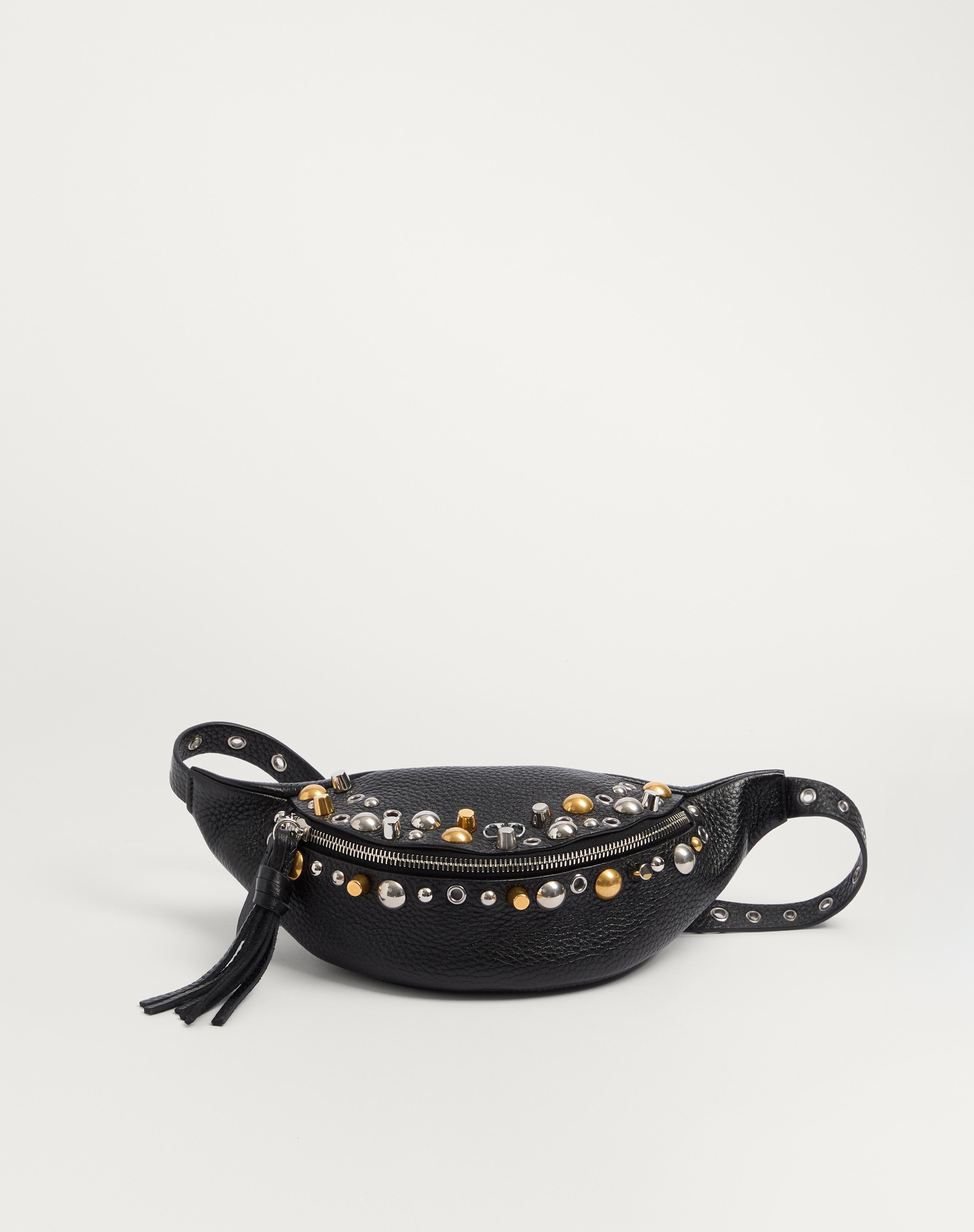 Valentino Garavani Nellcote belt bag in grainy calfskin decorated with studs of various shapes and sizes. - Small metallic detail with VLogo Signature - Zip closure - Adjustable grainy calfskin belt - Interior: slip pocket - Belt drop length: min. 8 cm to max. 38 cm / min. 3.1 in to max. 15.0 in. - Dimensions: W30xH7xD9 cm / W11.8xH2.8xD3.5 in. - Made in Italy Product code: 7Y2B0R39MJL_0NO