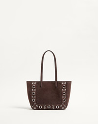 Valentino Garavani Nellcote mini suede shopping bag with floral bead embroidery on a linen base. Suede trim decorated with ball studs and rivets. - Palladium-finish hardware - Small metallic detail with VLogo Signature - Suede lining. Interior: zipper pocket - Handle drop length: 18 cm / 7.1 in. - Dimensions: W21xH16xD5 cm / W8.3xH6.3xD1.9 in. - Made in Italy This product contains magnets. Please consider if this product will be worn within 15 cm from any implanted device. Any concerns please contact your healthcare professional. Product code: 7W2B0R89YDT_RCB