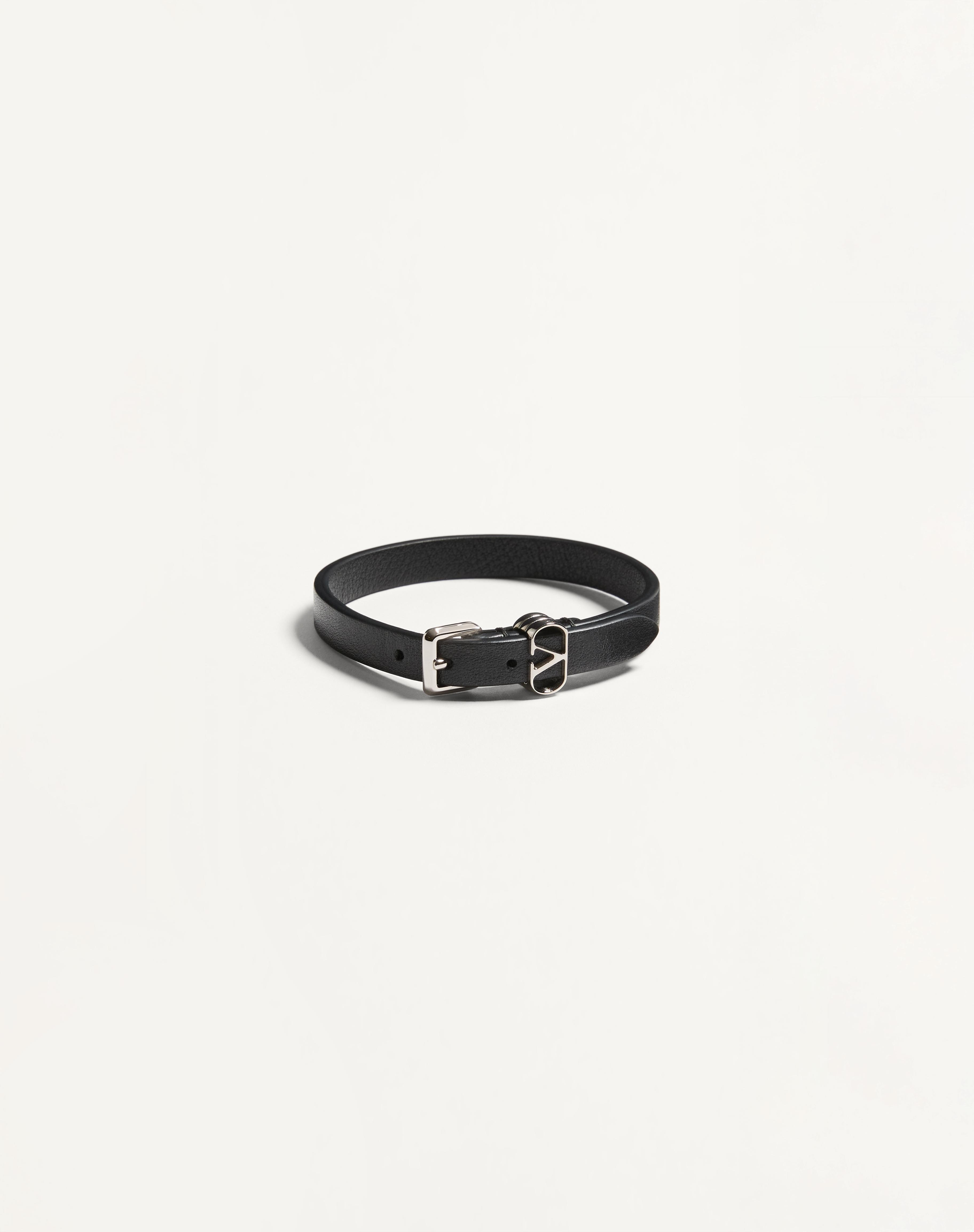 Valentino Garavani Ovalette bracelet in calfskin. - VLogo Signature accessory in palladium-tone finish - Vlogo size: 13.5x10 mm / 0.5x0.4 in. - Adjustable leather strap - Strap height: 8 mm / 0.3 in. - Strap length: 20 cm / 7.8 in. from the tip of the buckle pin to the center of the 3 holes - Made in Italy Product code: 7Y2J0AH7FXJ_0NO