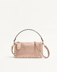 VALENTINO GARAVANI ROCKSTUD SMALL CROSSBODY BAG IN LAMINATED GRAINY CALFSKIN LEATHER