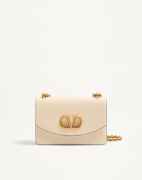 Valentino Garavani Vain shoulder bag in shiny calfskin with metallic VLogo Signature detail. The bag can be carried on the shoulder/crossbody thanks to the sliding chain. - Antique gold-finish hardware - Magnetic closure with antique brass-finish VLogo - Nappa lining. Interior: two compartments, zippered pocket and slip pocket Shoulder strap drop length: min. 27 cm - 52 cm max. / min. 10.6 cm to max. 20.4 in. - Dimensions: W24xH16xD8 cm / W9.4xH6.2xD0.7 in. - Made in Italy This product contains magnets. Please consider if this product will be worn within 15 cm from any implanted device. Any concerns please contact your healthcare professional. Product code: 6W0B0R16GCB_REN