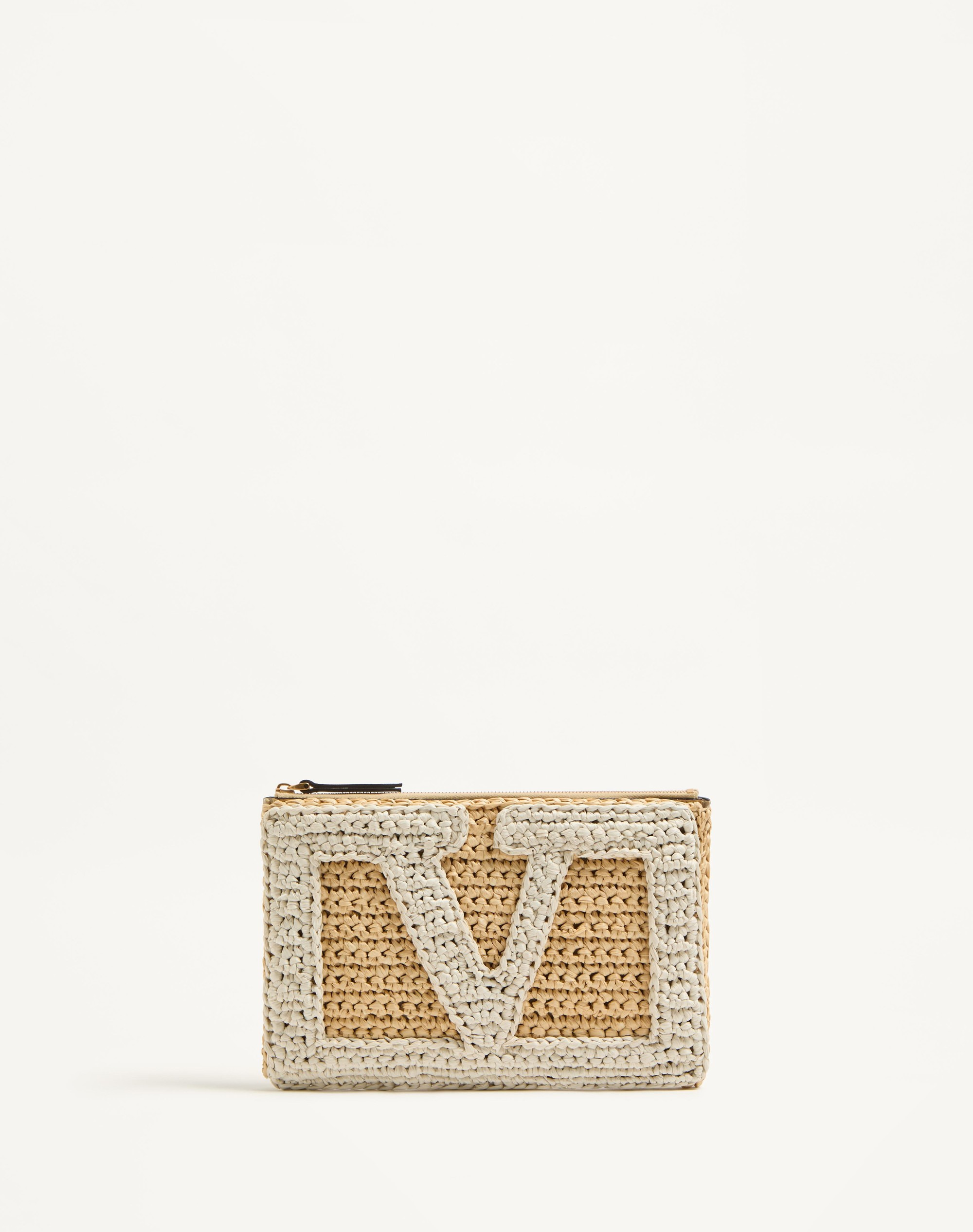 Valentino Garavani Viva Superstar Crochet pouch in synthetic raffia with contrasting maxi VLogo Signature. - Zip closure - Metal parts with antique gold finish - Canvas lining. Interior: three card slots - Dimensions: W23xH16 cm / W9.1xH6.3 in. - Made in Italy Product code: 7W2P0AR2NQA_CEM