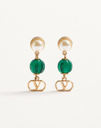 VLOGO SIGNATURE EARRINGS IN METAL, PEARL AND KNURLED GLASS