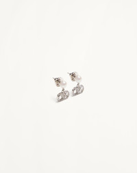 VLogo Signature Earrings in Metal, Resin Pearls, and Swarovski® Crystals - Palladium-tone finish - Resin pearls - Height: 1.5 cm / 0.6 in. - Width: 1 cm / 0.4 in. - Pin closure for pierced ears - Made in Italy Product code: 6W2J0X81HJY_R4S