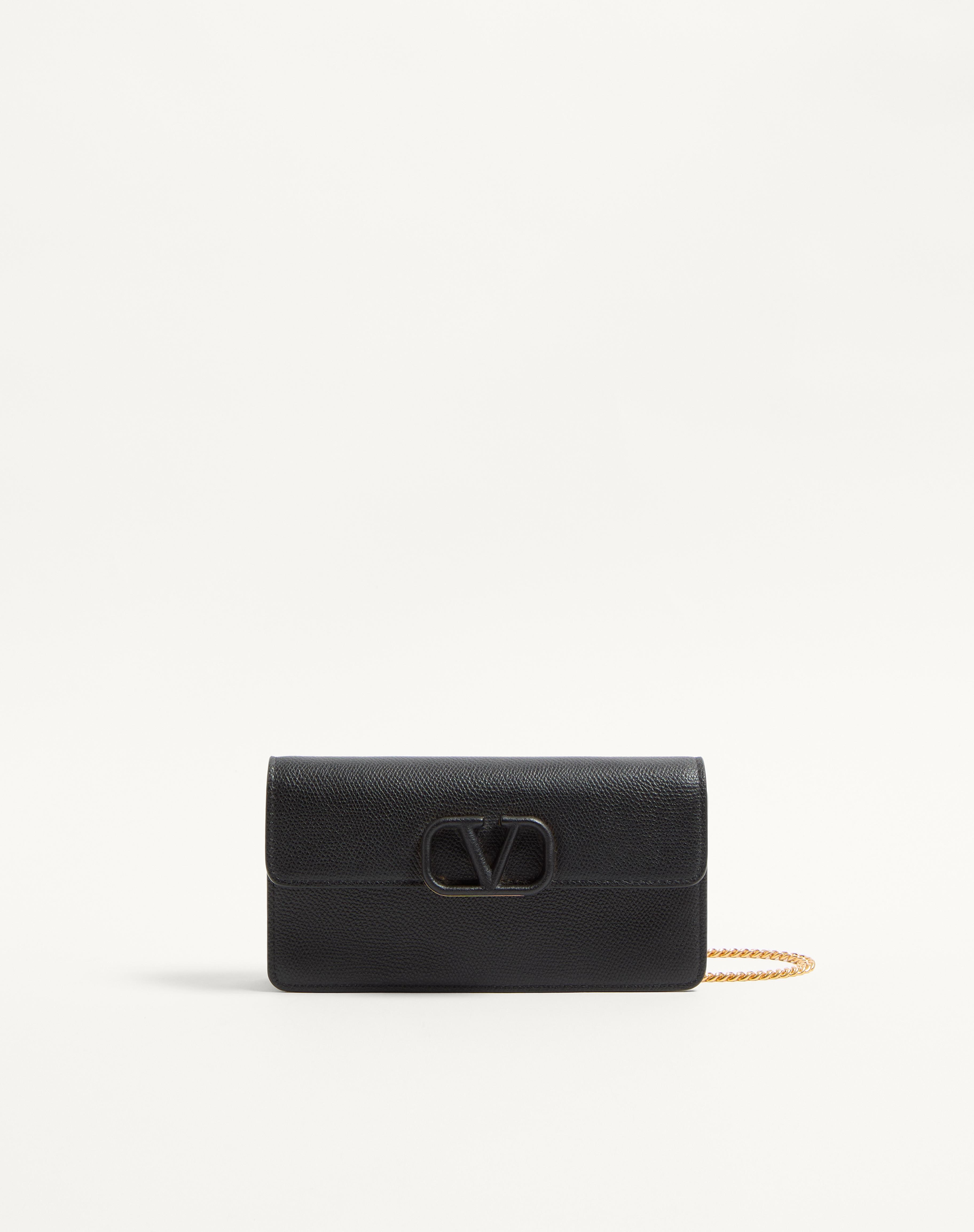VLOGO SIGNATURE GRAINY CALFSKIN WALLET WITH CHAIN