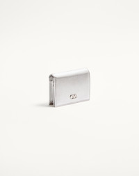 Valentino Garavani VLogo Signature wallet in laminated grainy calfskin. Palladium-finish hardware and logo - Press stud closure - Five card slots and one slip pocket - One zippered coin pocket and one pocket for bills - Dimensions: W11.5xH8.5xD3.5 cm / W4.5xH3.3xD1.4 in. - Made in Italy Product code: 8W2P0AJ3RFY_S13