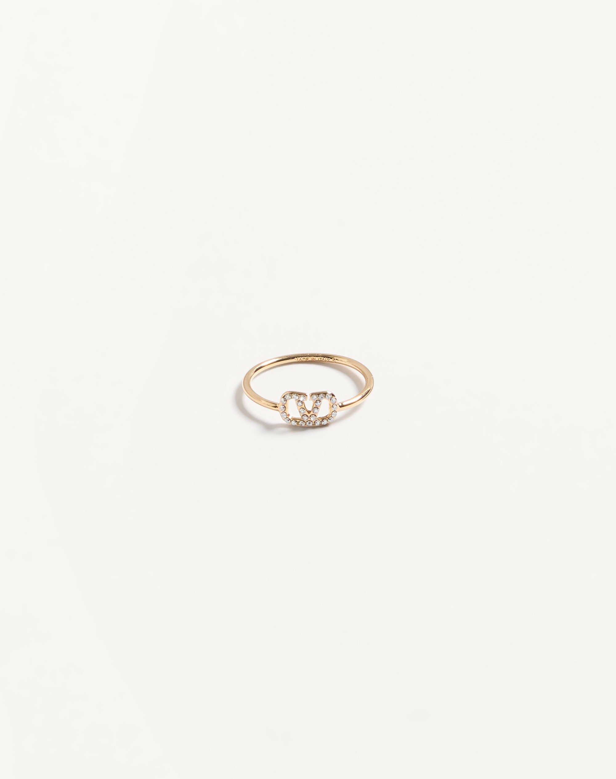 Vlogo Signature metal ring with Swarovski® crystals - 18K gold-tone finish - Height: 0.5 cm / 0.27 in. - Vlogo dimensions: 5 x 5 mm / 0.31 x 0.19 in. - Available in sizes: 9-11-13-15-17 - Made in Italy Product code: 7W2J0X03YCW_MH5