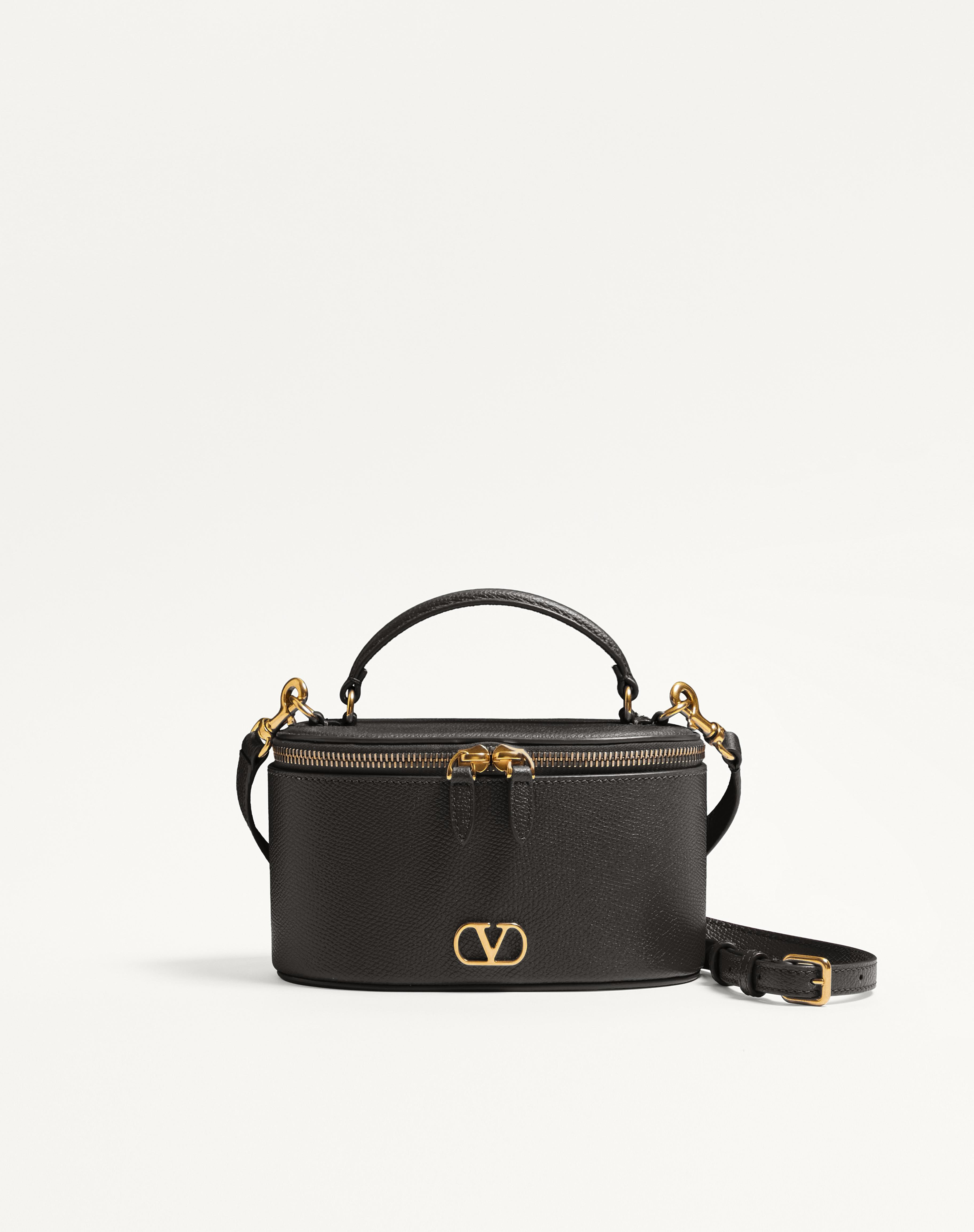 Valentino Garavani Vlogo Signature mini vanity bag in grainy calfskin. Can be worn over the shoulder/crossbody or carried as a handbag thanks to the handle and the adjustable and removable shoulder strap. - Logo and hardware in antique brass finish - Zipper closure - Nappa leather lining. Interior: one card slot - Adjustable and removable leather shoulder strap - Shoulder strap drop length: min 52.5 cm to max 57.5 cm / min 20.7 cm to max 22.6 in. - Leather handle. Drop length: 4 cm / 1.6 in. - Dimensions: W17xH10xD9 cm / W6.7xH3.9xD3.5 in. - Made in Italy Product code: 8W2P0AX8SNP_0NO