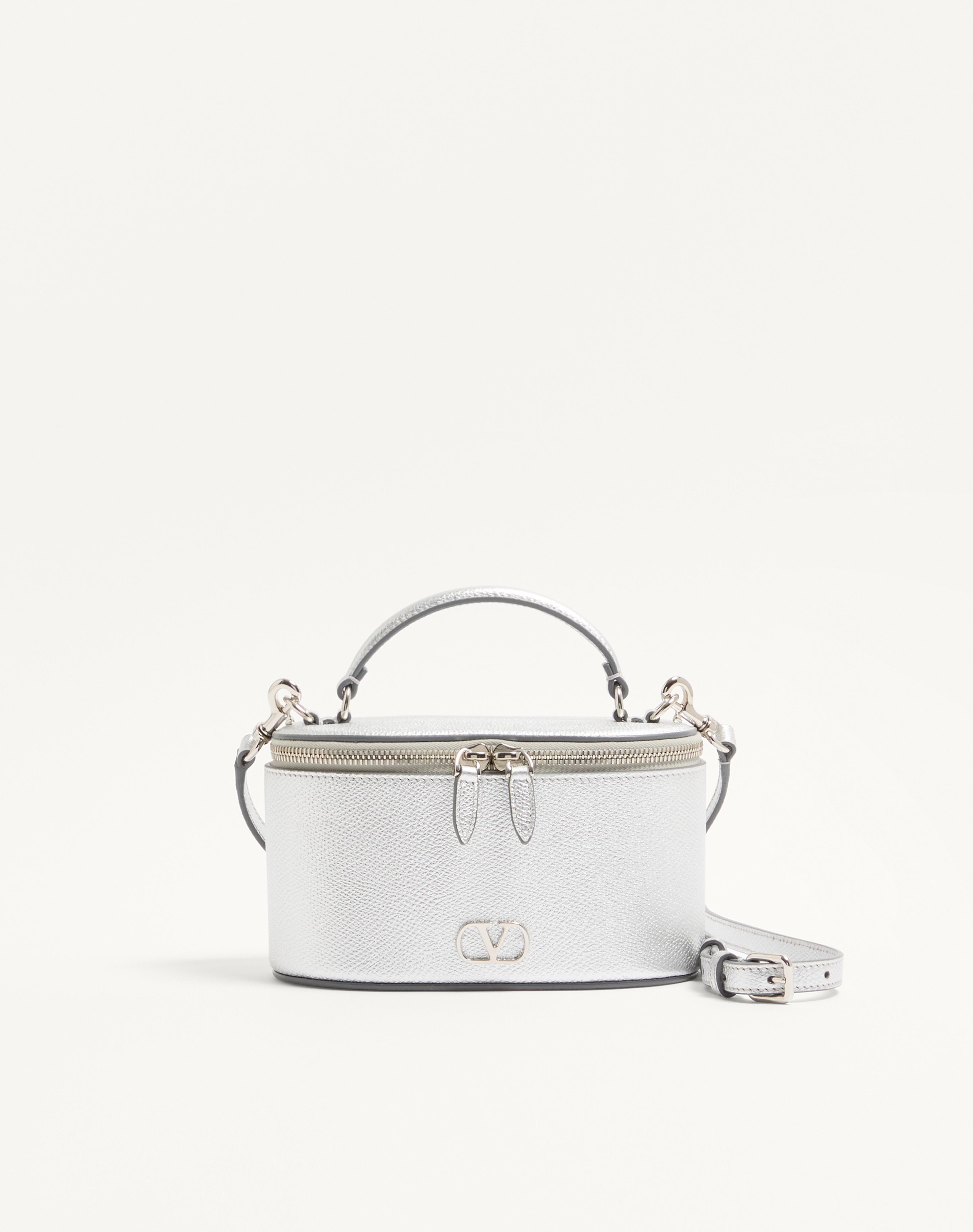 Valentino Garavani VLogo Signature mini vanity bag in laminated grainy calfskin. It can be worn over the shoulder/crossbody or carried as a handbag thanks to the handle and the adjustable and removable shoulder strap. - Palladium-finish logo and hardware - Zipper closure - Nappa leather lining. Interior: one card slot - Adjustable and removable leather shoulder strap - Shoulder strap drop length: min 52.5 cm to max 57.5 cm / min 20.7 cm to max 22.6 in. - Leather handle. Drop length: 4 cm / 1.6 in. - Dimensions: W17xH10xD9 cm / W6.7xH3.9xD3.5 in. - Made in Italy Product code: 8W2P0AX8RFY_S13