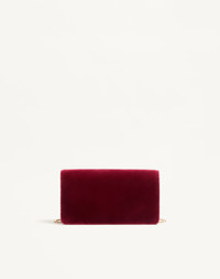 Valentino Garavani VLogo Signature mini shoulder bag in velvet with handmade bow detail and metallic VLogo Signature element with Swarovski® crystals. The chain allows this bag to be worn over the shoulder or crossbody. - Magnetic button closure - Taffeta bow detail - Light gold-finish logo with Swarovski® crystals - Light gold-finish hardware - Moire lining. Interior: one zippered pocket and one card slot - Fixed chain. Drop length: 53 cm / 20.9 in. - Dimensions: W20xH11xD3.5 cm / W7.9xH4.3xD1.4 in. - Made in Italy This product contains magnets. Please consider if this product will be worn within 15 cm from any implanted device. Any concerns please contact your healthcare professional. Product code: 8W2P0AY4TPV_DBL