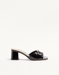 Valentino Garavani patent leather slide sandal with VLogo Signature decoration - VLogo Signature accessory covered in patent leather via high-frequency processing - Leather-covered block heel - Heel height 60 mm / 2.4 in. - Made in Italy Product code: 6W2S0HA6TMK_0NO