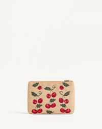 VLOGO SIGNATURE POUCH IN JACQUARD RAFFIA WITH CHERRYFIC PATTERN