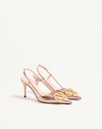 Valentino Garavani slingback pump in laminated nappa with VLogo Signature decoration - VLogo Signature accessory in vintage-effect brass finish with crystal applique - Heel height: 80 mm / 3.15 in. - Made in Italy Product code: 8W2S0R01LUY_V9P