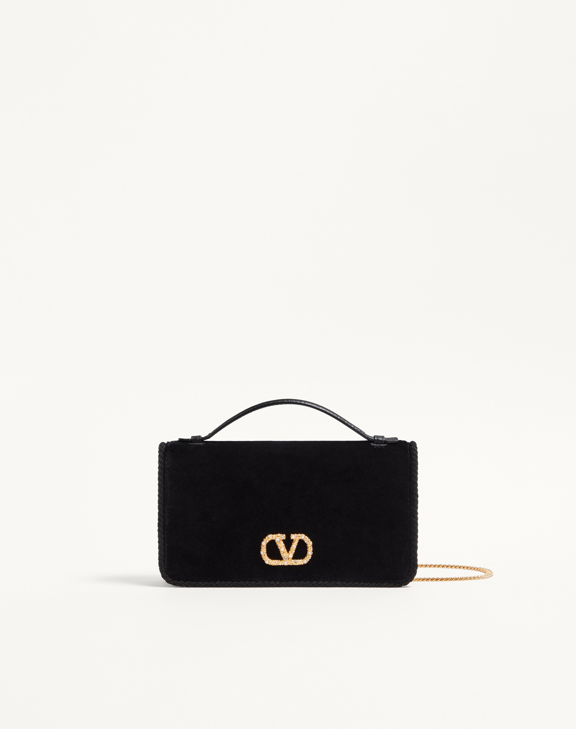 VLOGO SIGNATURE VELVET CHAIN WALLET WITH JEWEL LOGO