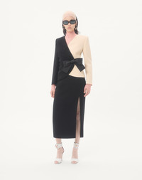 Wool Crepe Midi Dress - Side slit - Rear zipper closure - Wool Crepe (100% Virgin Wool) - Habotai Lining (100% Silk) - Length: 125 cm / 49.2 in. from the shoulders in an Italian size 40 - The model is 176 cm / 5'9" tall and wears an Italian size 40 - Made in Italy The look of the model is completed by Valentino Garavani Drip Rose Shoes. Product code: 7B0RAEC09Q0_0NO