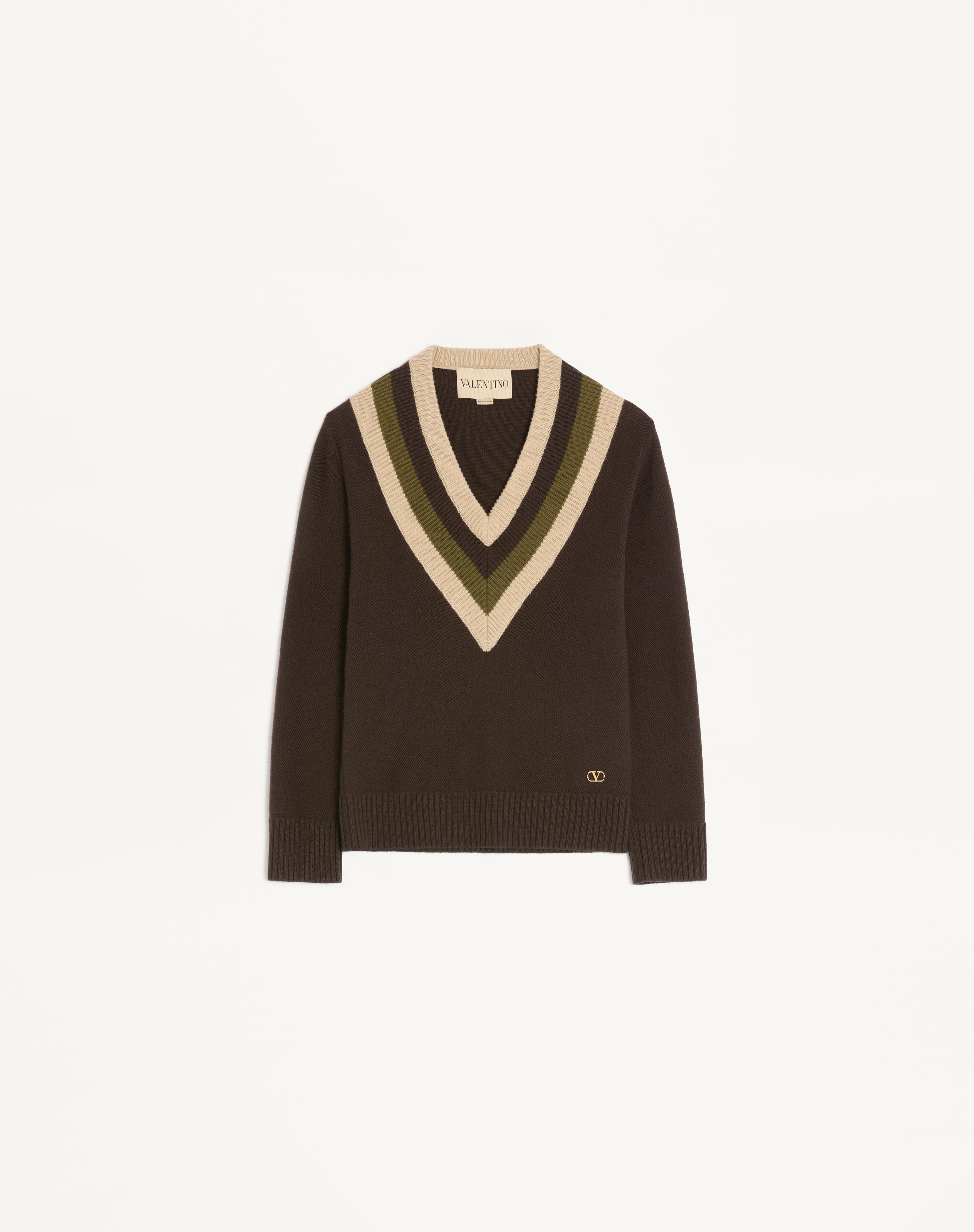 Wool sweater - V neckline - V logo detail - Wool (100% Virgin Wool) - Length: 64 cm / 29.5 in. from the shoulders in an Italian size S - The model is 176 cm / 5'9" tall and wears an Italian size S - Made in Italy The look of the model is completed by a Valentino Garavani Panthea Bag and Valentino Garavani Panthea Shoes. Product code: 7B0KC69L9SW_BET