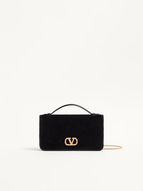 VLOGO SIGNATURE VELVET CHAIN WALLET WITH JEWEL LOGO