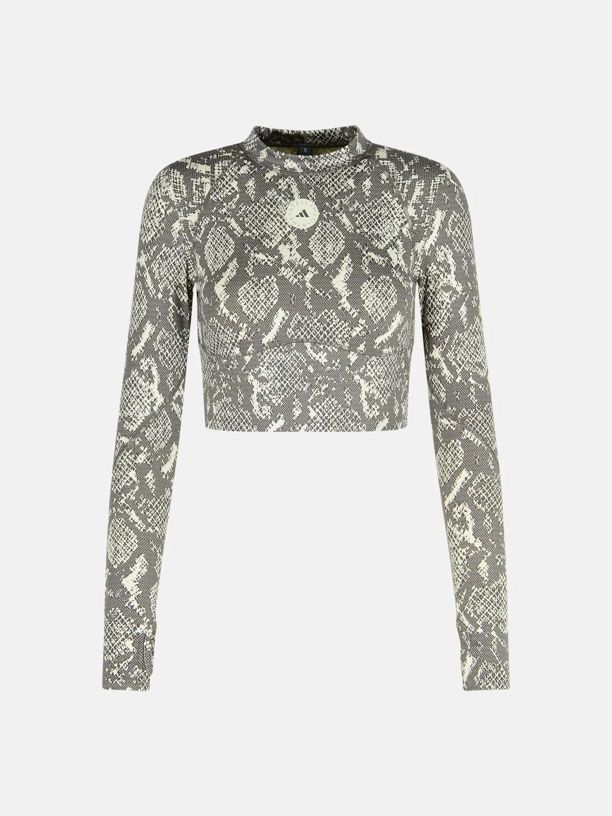 Manufacture code: JM8478 ALMMIL/CHACOA Retail code: JM8478 ALMMIL/CHACOA Made of stretch polyester, exposed stitching, snakeskin pattern, tonal front logo, short cut, thumb hole cuffs Main: 73% polyester, 27% elastane Made in Cambodia